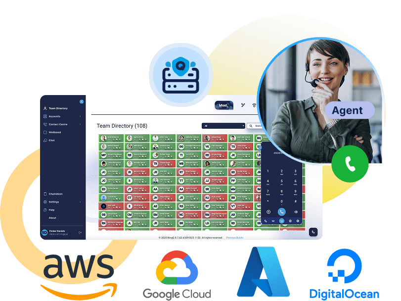 Deploy RingQ the way that works best for your business—hosted by RingQ, on your own server, or in your cloud account via our ISO for AWS, Google Cloud, Azure, or DigitalOcean. Every option comes fully equipped with robust security and all the communication features you need, so you can focus on what matters most to your business.