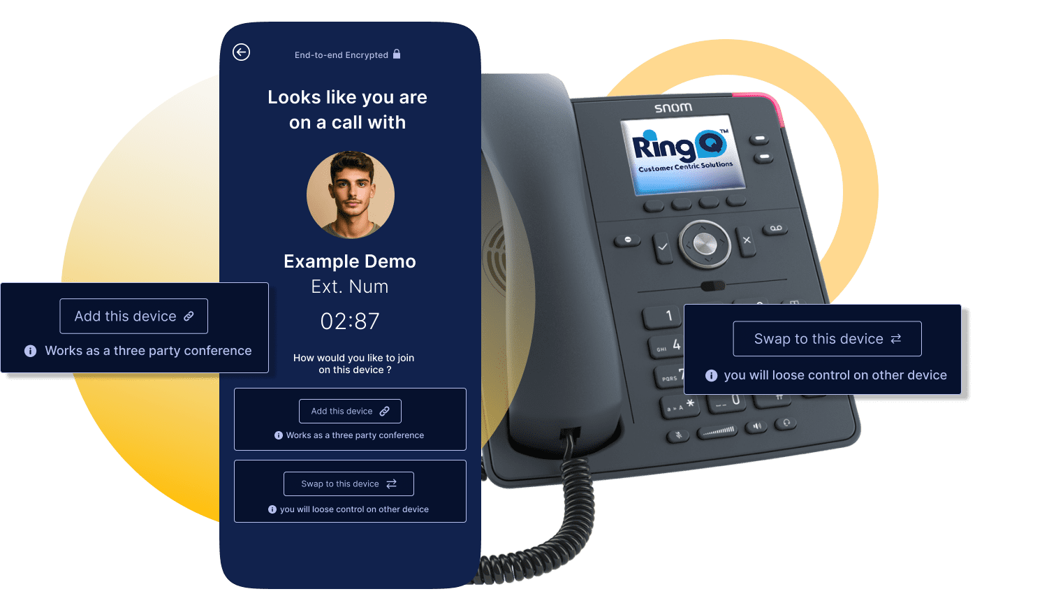 RingQ Join makes device switching incredibly straightforward. When a call is active, it becomes visible on your other RingQ-enabled devices. With just a few clicks, you can take over the call from another device instantly. There’s no disruption to the caller, no delay, and no technical complexity—just a smooth handover that keeps conversations flowing naturally.