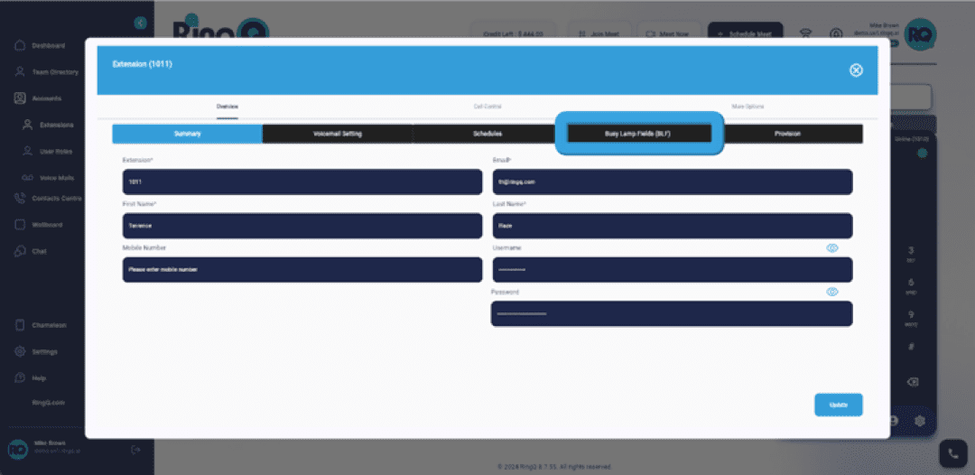 4. Choose the specific extension for which you want to configure the BLF.