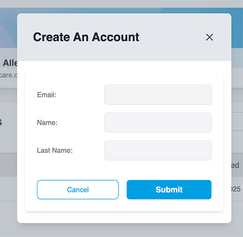 2. Fill in the new user’s email, name and last name. Click Submit.