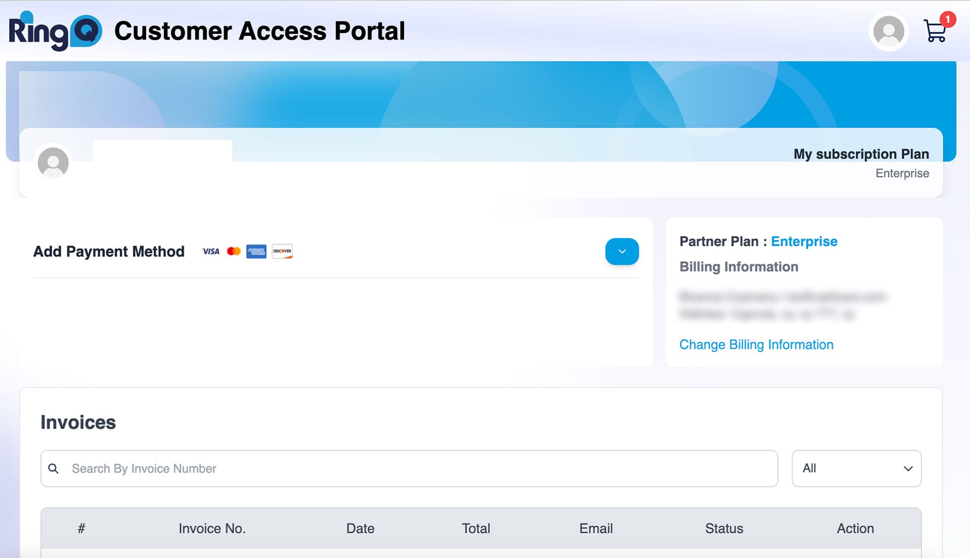 - To access the customer portal, go to https://cap.ringq.com/login and enter your credentials.