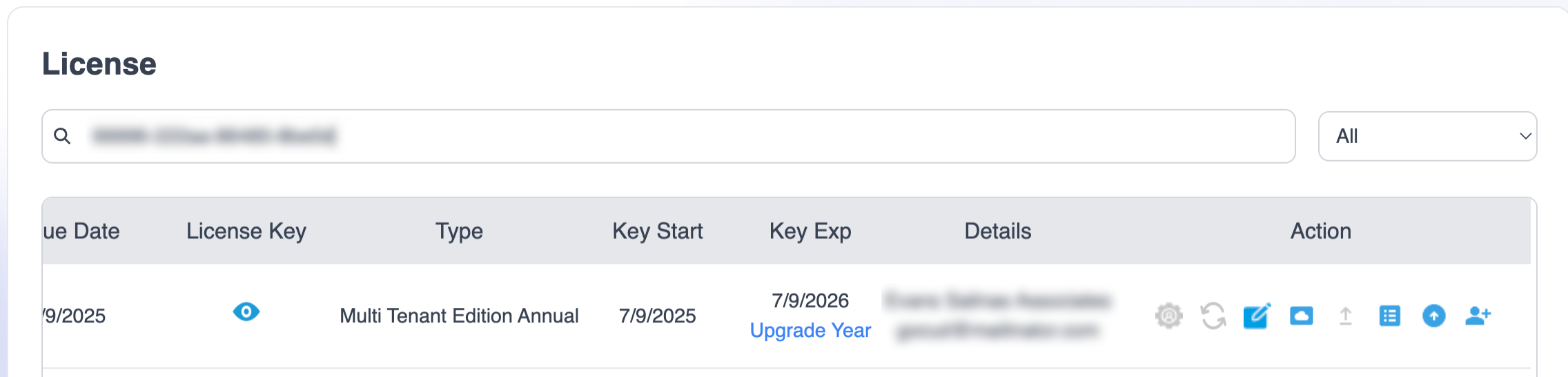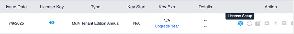 Go back to your RingQ customer portal. Navigate to the “Licenses” page and locate your multi-tenant license. To the right you will see various actions you can perform: