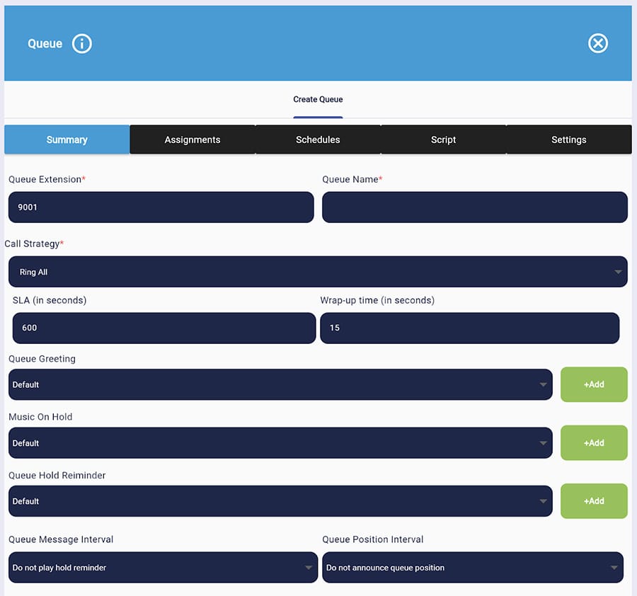 - Queue message interval: choose the amount of time after which you want the queue hold reminder audio file to play.