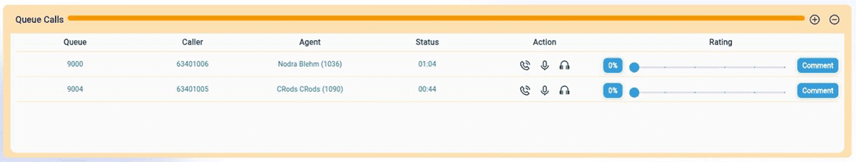- Queue Name – Displays the name of the assigned agent in the queue.